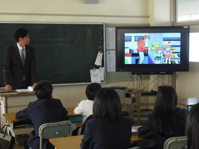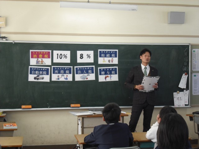 八尾税務署管内の税理士・柴田悠貴さんに来ていただき、「租税教室」実施していただき、税についていろいろと教えていただきました。私たちの生活に身近な消費税をはじめ、日本には50種類の税があるそうです。そして、「皆さんは、税金を払ってもよい?払いたくない?」との問いかけから、税のある暮らしと税のない暮らしを考えるDVD『マリンとヤマトの不思議な日曜日』を視聴しました。((2)に続く)