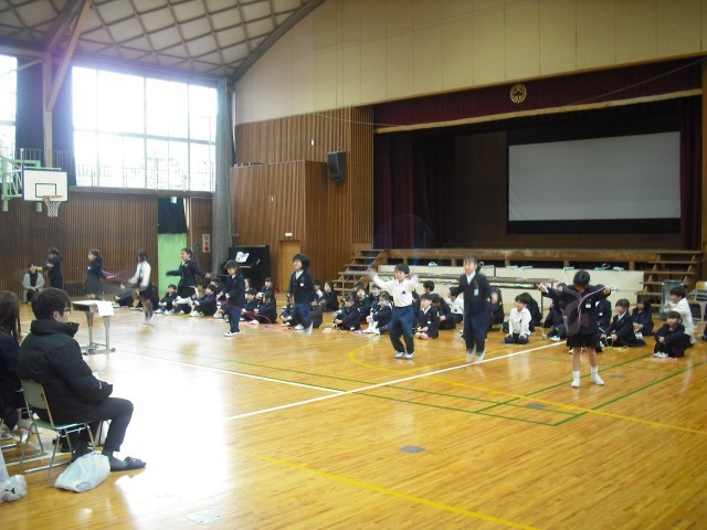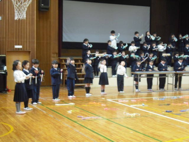 歌の合唱に続いて、🎵「きらきら星」を演奏しました。続いて、縄跳びを、個人の特異な技で披露しました。(3に続く)