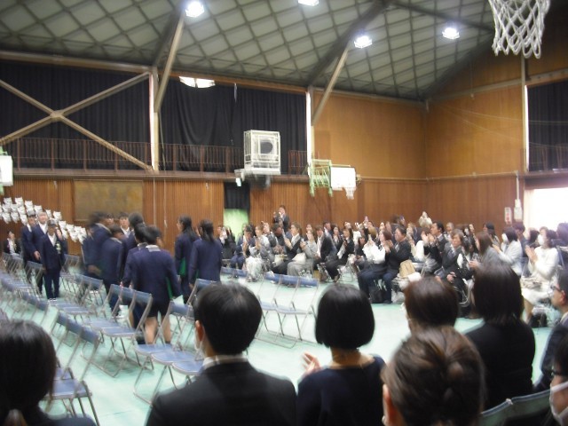 卒業生が、これまでの思い出と大きな希望を胸に、みんなの拍手の中、式場を退場しました。