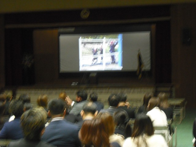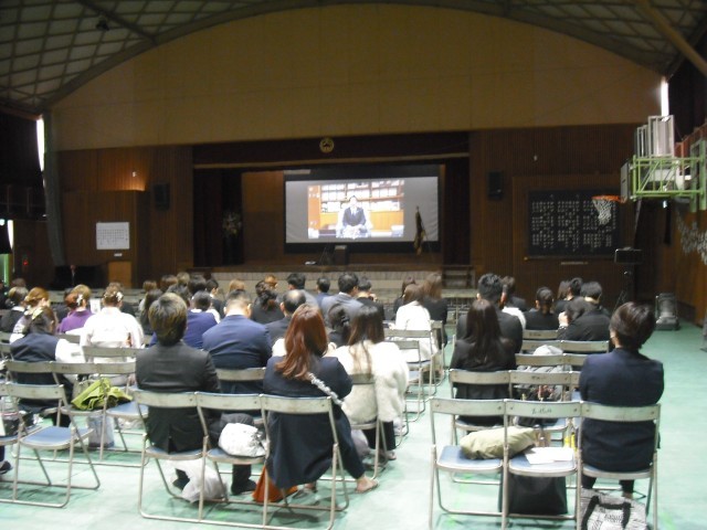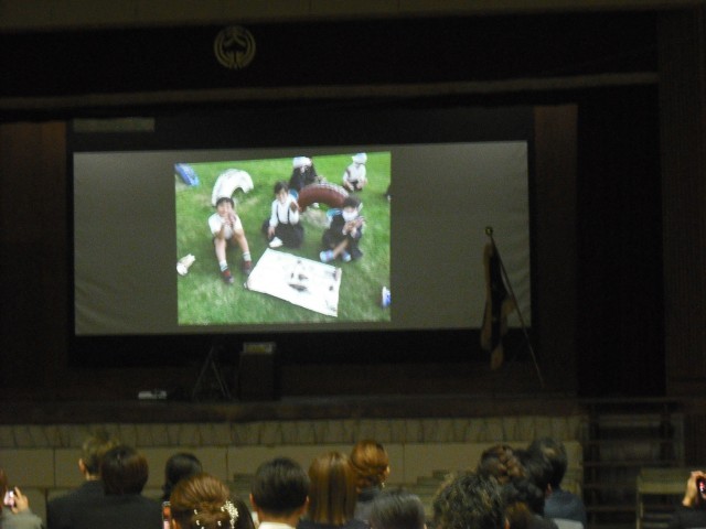 卒業生の学級取り扱いの間、保護者には、市長メッセージと6年間の思い出の写真を観ていただきました。
