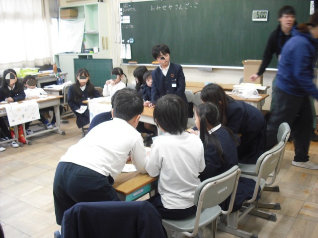先日の2組に続き、本日は、1組でお店屋さんが開かれました。売り出された品物は、食べ物から、文房具、生活用品に至るまで、品ぞろえは十分でした。「いらっしゃい」「これ、おすすめですよ」等など、売り子さんのかけ声も慣れたものでした。