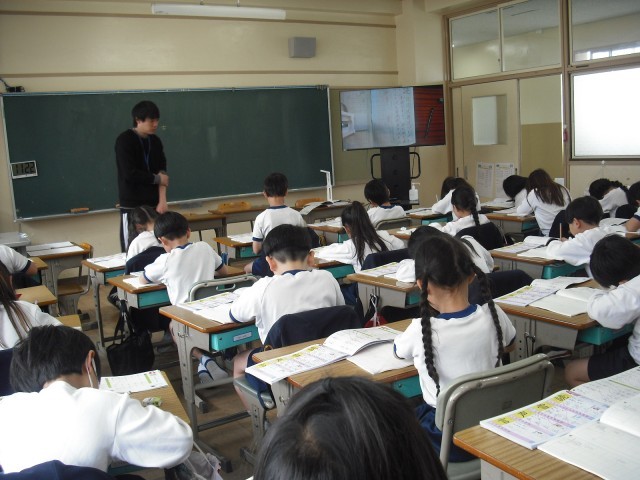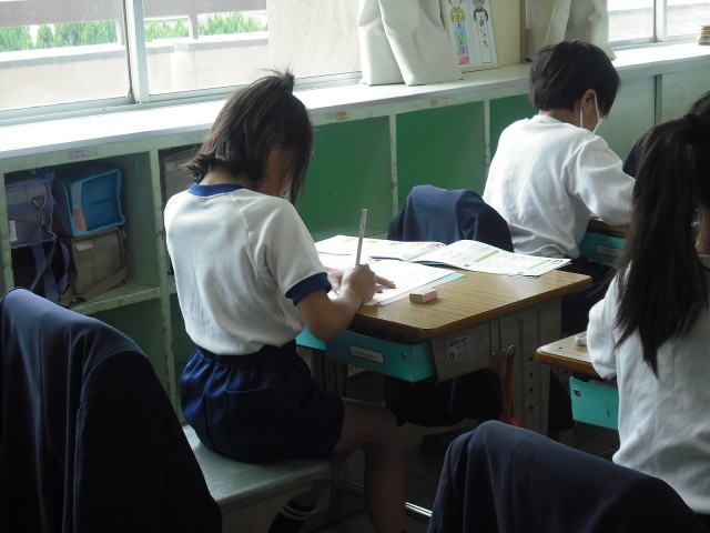 とっても姿勢よく漢字を書いている児童がいました。ステキですね。時刻の学習をしている学年では、クイズ形式で、隣の友だちと時刻について楽しみながら復習していました。50m走をしている学年もありました。また、休み時間の運動場で元気に遊ぶ子どもたちの様子も撮ってみました(^^)/何やら草場のあたりで子どもたちが、わぁわぁぎゃぁぎゃぁ言っています。見に行くとトカゲが飼育ケースに入れられていて、このトカゲの餌を探しているねん!!と捕まえてきた虫をみるとクモや小さなバッタ。きっとトカゲは草むらに放してあげた方が‥と思いましたが、子どもたちの好奇心と探求心をもうちょっと見ていたいと思ってそっとしておきました。