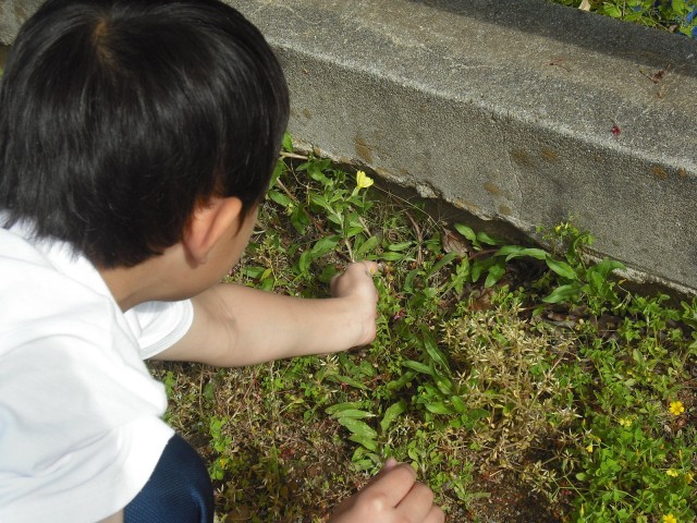 3年生は、春の草花を探しています。お花を見つけて、図工で使うそうです。どんな作品ができるのかしら?(#^^#)