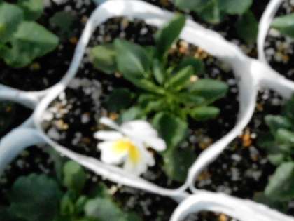 先日、10月5日(水)に児童部会(飼育環境、保健、体育部)で移植作業を行った後、環境部が毎日の水やりを担当しています。その部会の児童が、10月18日に発見した最初のパンジーの一輪です。