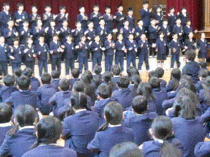 2年生 音読朝会「いろいろな詩」 公開日 2017/02/21 更新日 2017/02/21 2年 2月20日(月)は、2年生の音読朝会がありました。8個の詩の紹介でした。一年間に教室で練習してきた詩を組み合わせて、子どもたちの自信のある詩ばかりが発表されたようです。とても元気な声で、堂々とした姿勢で読んでいました。