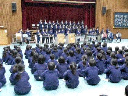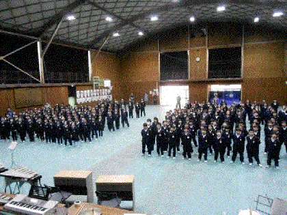 3月14日(火)の3時限目に、6年生を送る会をしました。1年生は、「あきらめないで自分」、2年生は「大きくなったね」、3年生は「ありがとうの花」、4年生は「世界に一つだけの花」、5年生は「テイクアチャンス」の歌を披露しました。6年生からは、歌「命の歌」と合奏「銀河鉄道999」「木星」をプレゼントしてもらいました。最後に「きみとぼくのラララ」を全員で歌いました。最後の集会は、6年生にとって思い出に残る時間になったと思います。