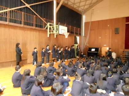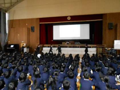 児童朝会 児童会からメッセージ 公開日 2019/02/26 更新日 2019/02/26 お知らせ 2月25日(月)の児童朝会では、児童会の代表が、「ろうかを走らない」というテーマでプレゼンテーションを作り、発表してくれました。最近、廊下を走っている人が多くて、おおきなけがにつながっているということを問題として話し合いをしました。そして、全校へのメッセージとして提案してくれました。途中で寸劇もあり、低学年にもよくわかる内容でした。