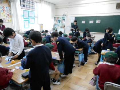 3月6日(水)に、木の実幼稚園から年長児さんが学校へ来てくれました。5クラスあるので、前半と後半に分かれて、1年生と一緒に折り紙をしたり、お話をしたり、1年生の音読を聞いてくれたりしました。その後、教頭先生と一緒に学校の中の様子を見てもらいました。パソコン室や図書室、体育館など、幼稚園と違って大きい教室に驚いていました。いろいろな小学校に行くようですが、「ここへ来たいな。」と言ってくれる子もいました。