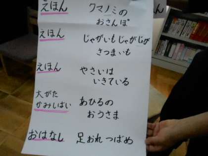 1・2・3年生は、毎年来ていただいているお話会ボランティアの方々から、絵本や紙芝居の読み聞かせをしていただきました。その季節にあったお話や、子どもたちの興味のある話など、いつも楽しい内容で紹介していただいています。子どもたちは、45分間があっという間に終わってしまう感じで聞き入っていました。