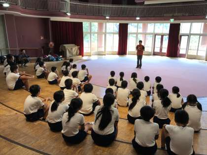 入所式が始まりました。 「自分のことは自分で」「来たときよりもきれいに」 二つの大事なポイントの説明を聞きました。