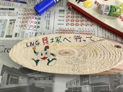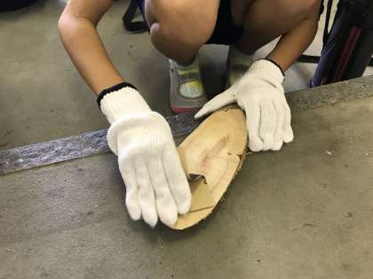 楽しかった林間の思い出をスライスチップにかいています。