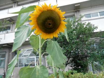 夏休み真っただ中、元気なひまわり 公開日 2019/08/06 更新日 2019/08/06 お知らせ 夏休みに入り、学校行事も一休みになりました。毎日、気温がぐんぐんと上がり、暑さのために体調を崩してしまっている人もいるかもしれませんが、学習や自由研究、読書などは計画的にすすんでいるでしょうか。8月終わりにあわてて、やってないことをするのではなく、余裕を持ってやりましょう。子どもたちのいない校庭では、大きなひまわりの花がひらいています。
