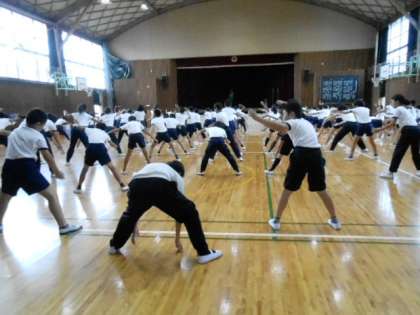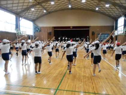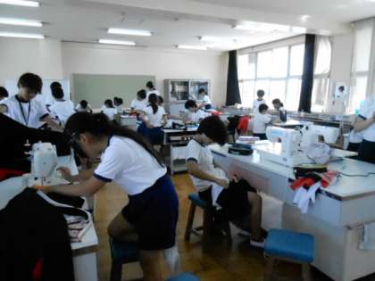 次に、5・6年生のダンスです。ダンスの練習とともに、家庭科室では、本番で着る○○○を作製しています。