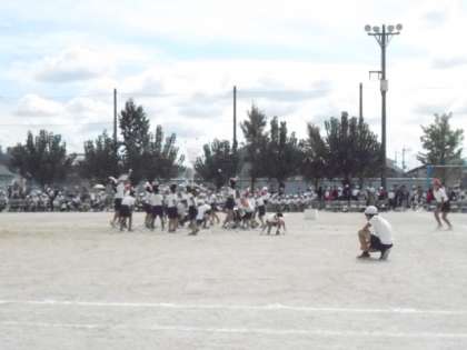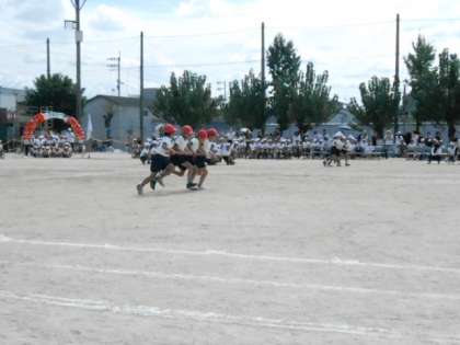 9月29日(日)は、天候に恵まれた中、運動会を実施することができました。お家の方々にもたくさん声援をいただきました。1年生団競は、玉入れ「エビカニクスで☆おどってポン」です。2年生団競は、デカパンリレー「ワン☆ツー☆パン☆ツー」です。3年生団競は、台風の目「まきおこせ!天北旋風」です。どのチームもがんばって力を出しきりました。