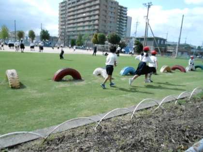 芝生も発芽し、三連休中には、芝生を管理してくださる地域の方が、芝刈りをしてくださいました。そして、今週の火曜日から芝生で活動できるようにしました。子どもたちは、鬼ごっこをしたり、ごろごろと転がったり、芝生の感触を楽しみながら遊んでいました。