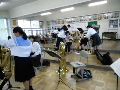 中学校には、合言葉があり、「自分たちで考え創る二中」「みんなで学力を高め合う二中」「誰一人いやな思いをしない二中」だと教えてもらいました。授業体験の後は、希望に分かれてのクラブ体験です。残念ながら雨が降ってきましたが、運動クラブ(野球、ソフトテニス、サッカー、陸上)は、雨の中、基本練習をしました。先輩の頼もしい掛け声で、気持ちよく?活動していました。体育館では、バレーボール、バスケットボール、卓球が活動しました。教室では、吹奏楽、家庭科、美術、パソコンが活動をしました。少しだけ中学生の気分がわかった半日でした。