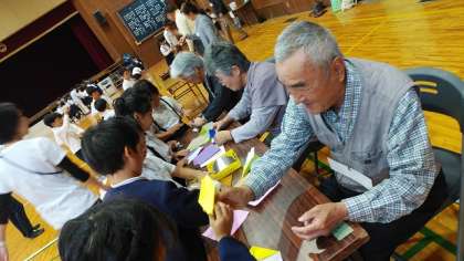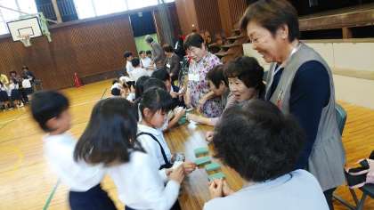 10月24日(木)に、1年生は弁天苑(松原市立老人福祉センター)の方とむかしあそび交流を行いました。こまやおてだま、おはじきなど、日頃あまり触れることのない遊びをたくさん教えていただきました。今回初めて児童代表を立てて、自分たちで司会やお礼の言葉を伝えました。楽しくてがんばれた、良い交流会になりました。