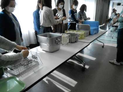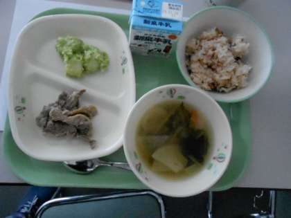 給食試食会は、22名の保護者の参加のもと、行われました。最初に、松原市教育委員会栄養士の山元さんから、学校給食のこと、最近の食事情のこと、食品添加物のことなどをお話していただきました。後半は、試飲として、いろいろな添加物でできあがっただしを調合し、味比べをしました。その後、待ちに待った給食試食の時間です。献立は、地場産物を使って、調理師さんたちが考えた献立だそうです。「鴨のねぎ塩だれ、かぶととうふのとろみ汁、たこめし、ずんだもち、牛乳」でした。みなさん、おいしく召し上がっていただけたでしょうか。