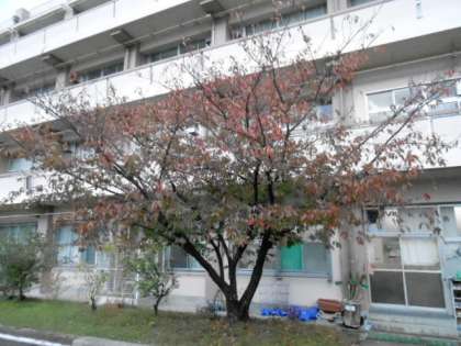 もう一枚の木の写真は、運動場に面した側にある桜の木です。やっと色づいてきました。
