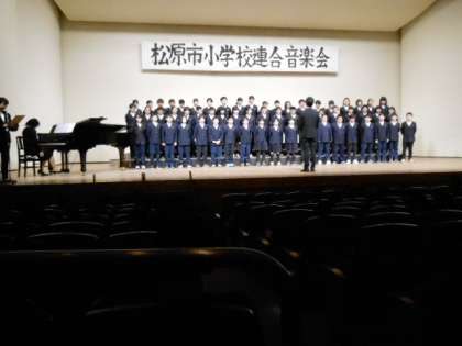 11月20日(水)の午後から、松原市小学校連合音楽会が行われました。天北小学校は、第二部の参加でした。河内天美駅から高見の里駅まで、電車に乗り、文化会館まで歩いていきました。文化会館では、小学校5校が集まっており、それぞれ、学校の代表として練習を積んできた曲を披露しました。天北小6年生は、最後の出場でした。歌いだした途端から、とても美しく、低音高音がひびきあっていました。最高の出来だったと思います。子どもたちの感想は、「スターになった気分。」ということでした。