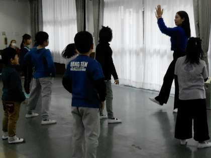 2月8日(土)の天北元気サタデーは、ダンスシリーズの4回目、発表会でした。アラジンの曲に合わせて、振り付けしてもらったダンスを阪南大学のお姉さんに教えていただいていました。それを、お家の方や先生たちに披露してくれました。前回の練習から2カ月もたっていましたが、初めて参加した子も含めて大変上手に踊っていました。自信満々の顔がいいですね。