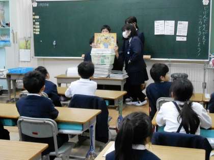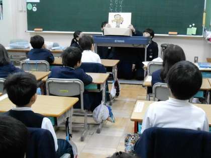 木曜日の朝は、音読タイムの時間です。この時間に4・5・6年生の図書部会の児童が、兄弟学年へ出向いて、紙芝居の読み聞かせをしてくれました。1・2・3年生は、高学年の読み声を真剣に聞き、楽しいお話には、笑ったりして素敵な時間を過ごしました。