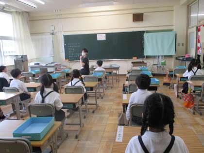 1年生は、授業中のルールも学び、しっかり覚えようとしていました。