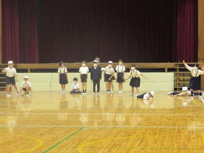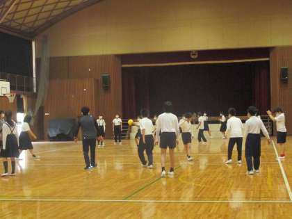 昨日の雨で運動場が使えなかったため、体育館で体を動かしました。