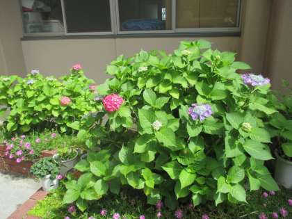季節は確実に進み、中庭に、アジサイが咲きました。