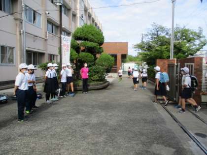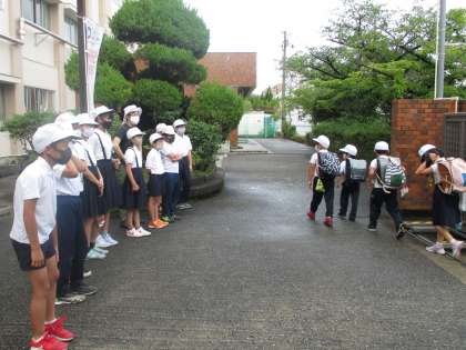 児童会代表委員が「あいさつ運動」に取り組みました。 元気なあいさつの声が聞こえると 自然と笑顔になります。