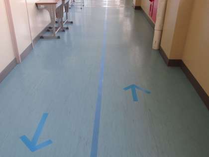 環境美化部は、ろうかの右側通行をすすめようと