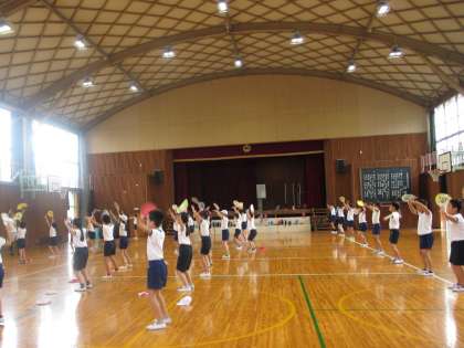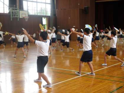 4年生は、うちわ(本番は、扇子)を使っての演技