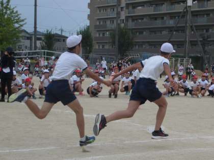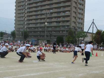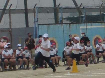 最後の6年生対教師対抗リレーでは、大人げないといわれても、