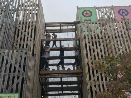 現地では色々な、自転車に乗って遊びました。立体迷路にも挑戦しました。
