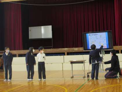 校区たんけん発表会 公開日 2020/12/04 更新日 2020/12/04 お知らせ 12月2日 2年生は、校区で見つけたことを班ごとにまとめ 見守り隊の方々に発表しました。 消火器や避難場所などにも興味をもっていたことに 驚きました。