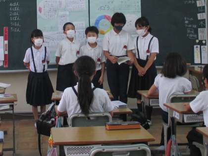 7月14日 5年生 食糧生産について調べたことを発表しよう-1