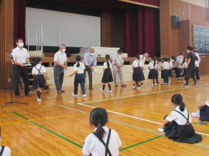 7月20日 見守り隊のみなさま -2 公開日 2022/07/20 更新日 2022/07/20 お知らせ 体育館では、児童会代表委員と2年生代表からお礼の言葉を述べ2年生が手作りのプレゼントを送りました。 「自分たちでも、交通安全に気を付ける」と決意も述べていました。 一人ひとりが、意識して事故なく過ごせますように。 見守り隊のみなさまやPTA見守り当番の方、1学期の見守り、ありがとうございました! これからもよろしくお願いします。