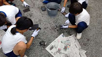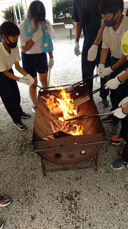 初めての火起こしにも真剣。スス落としの磨き方にも真剣な5年生です。
