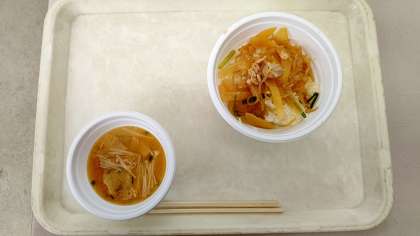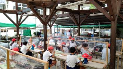 川遊びの後のご飯はどんどん進みます!この後は退所式をして、バスに乗ります。食べ過ぎないように…