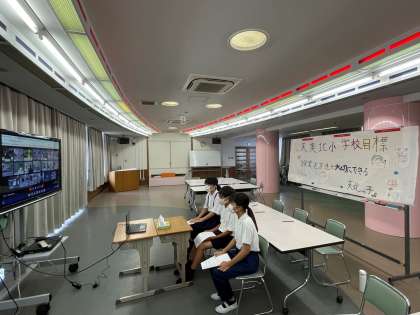 8月24日 松原市児童会生徒会交流 公開日 2022/08/24 更新日 2022/08/24 お知らせ 市内の児童会・生徒会の代表が集まり、オンラインで各学校の取り組みを紹介、交流しました。 天美北小学校からは、児童会の学校目標である「授業も友だちも大切にできる天美北っ子」の紹介や、委員会活動での取り組みと成果を報告しました。 他の学校の取り組みに質問したり、聞かれた質問に答えたりするなど、積極的な交流が出来ていました。 参加した代表のみなさん、おつかれさまでした。