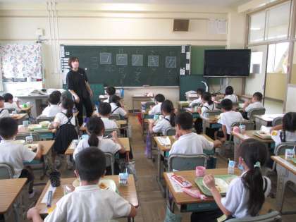 感染対策のため、おしゃべりをがまんして静かに食べていて、えらい!!