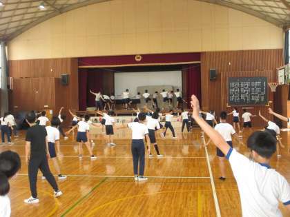 6年生も、ソーラン実行委員の子たちがリードをしながら、一つ一つの動きを覚えようとがんばっています。