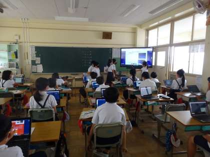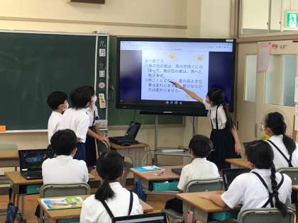 理科の「月と星の動き」で学習したことを、各班でまとめてプレゼン大会をしました。どの班もタブレットを上手に活用して、すてきなスライドに仕上げていました。また、同じ班の中で助け合う姿がたくさん見られました。