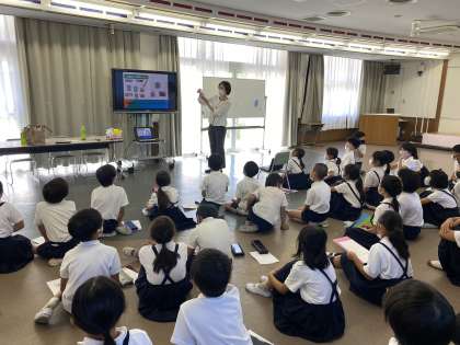 社会「はたらく人とわたしたちのくらし」で、ヤマザキパン松原第2工場の方々からパン工場について、お話をしていただきました。工場についてのひみつやパンの作り方などを聞き、最後の質問タイムではたくさんの手が挙がりました。教科書に載っていないことを知ることができ、とても良い学びになったようです。