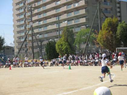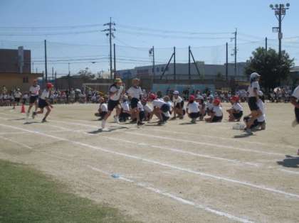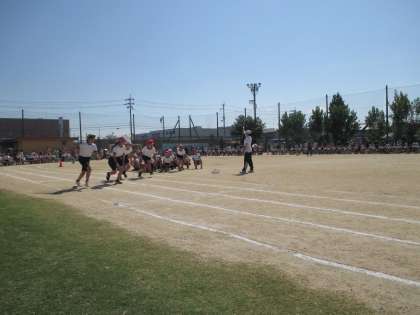 リレー選手が練習の成果を発揮し、バトンをつなぎ力走を見せました。 かっこいい走りでした。