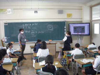 3年生 英語の学習 公開日 2022/10/05 更新日 2022/10/05 3年 3年生は英語の時間に、英語教師とのやりとりをして学習を進めています。 "What food do you like?"(どんな食べ物が好きですか?)という英語教師の質問に、 "I like tonkatu!"とか、"I like ramen!" と元気よく答えていました。