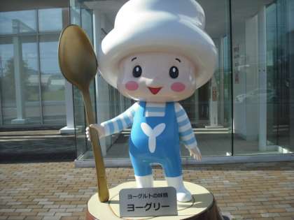 5年生 校外学習4(明治の工場) 公開日 2022/10/13 更新日 2022/10/13 5年 お弁当を食べて、海浜で過ごした後は、明治のヨーグルト工場を見学しました。勉強にもなり、おみやげももらって大満足で帰ってきました! (※写真は工場の外にいた明治のキャラクターです。)