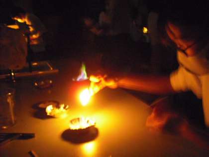 二中体験授業3 公開日 2022/10/17 更新日 2022/10/17 6年 国語は、日本語の不思議!というテーマで学習しました。タブレットを小学校から持っていって活用していました。 理科は、炎色反応の実験をしました。いろいろな色に染まる炎の色に興味津々でした。 社会は、世界の国々をゲームを通して学習しました。とっても盛り上がっていました!