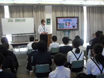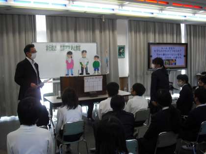 今日は、5年生の非行防止教室がありました。富田林少年サポートセンターからと大阪府警察本部少年課からそれぞれ1名ずつ来ていただきました。
