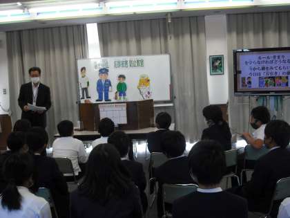 暴力、いじめ、非行(主に万引きについて)のお話を丁寧にしていただきました。万引きについては、ペープサートでの人形劇を交えながら子どもたちに「万引きをしたらどうなるのか」を考えてもらいました。